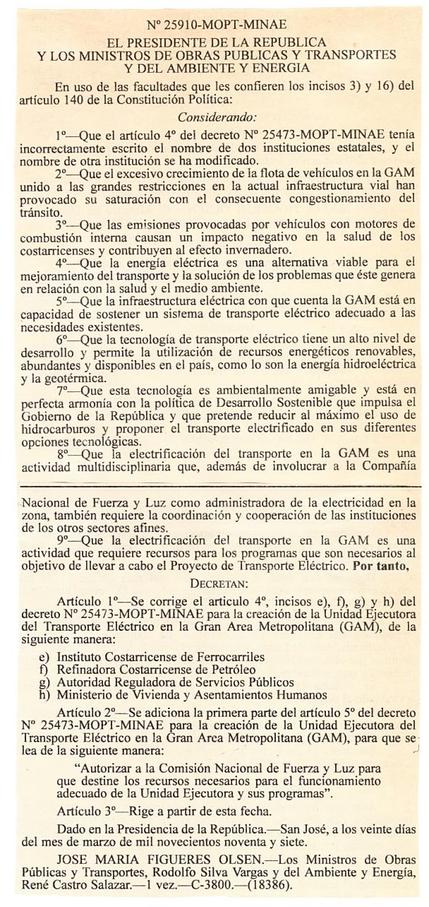 Creación de la Unidad Ejecutora del Transporte Eléctrico en el Gam y sus correcciones