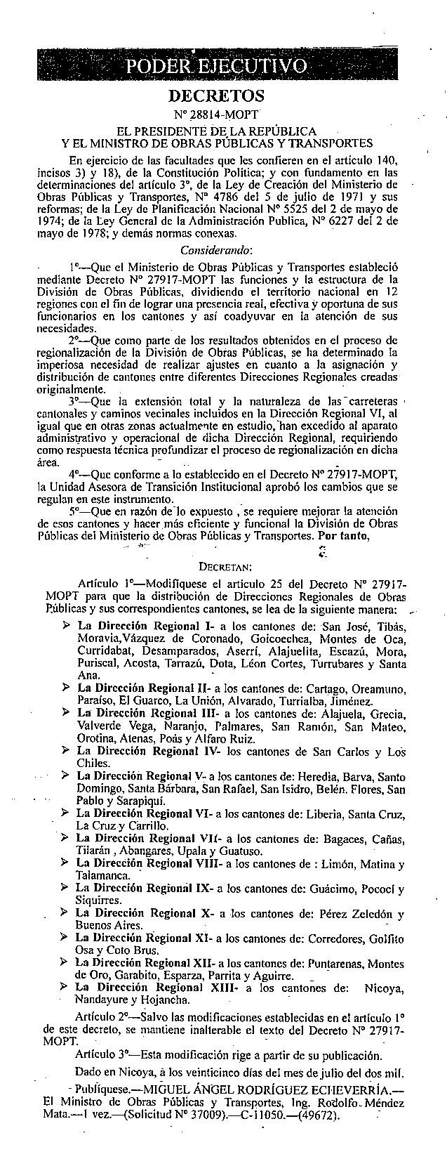 MOPT, REGIONALES, DIVISION DE OBRAS PUBLICAS, DIRECCIONES REGIONALES, REGIONALIZACION, D-28814